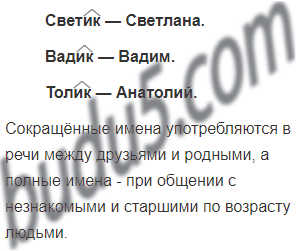 В своей речи мы часто употребляем сокращённые имена, когда общаемся. Прочитай сокращённые имена. А как они звучат полностью? Запиши имена, как в образце, выдели суффиксы.