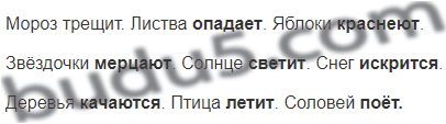 Мороз трещит. Листва ... . Яблоки ... . Звёздочки ... . Солнце ... . Снег ... . Деревья ... . Птица ... . Соловей ... .