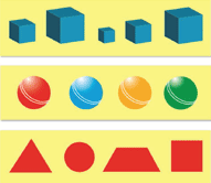 3. Расскажи, чем отличаются друг от друга фигуры в каждом ряду.