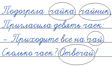 Запишите считалку по памяти. Обведите слова с буквой й. Какая орфограмма встречается в словах чайка, чайник?