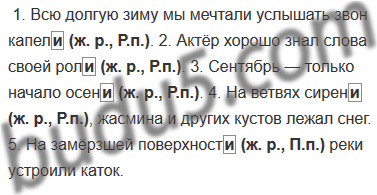 1. Всю долгую зиму мы мечтали услышать звон капел.. . 2. Актёр хорошо знал слова своей рол.. . 3. Сентябрь — только начало осей.. . 4. На ветвях сирен.., жасмина и других кустов лежал снег. 5. На замёрзшей поверхност.. реки устроили каток.