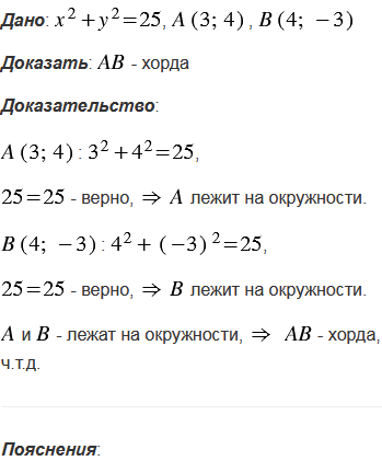 и две точки А(3; 4) и В(4; -3). Докажите, что АВ - хорда данной окружности.