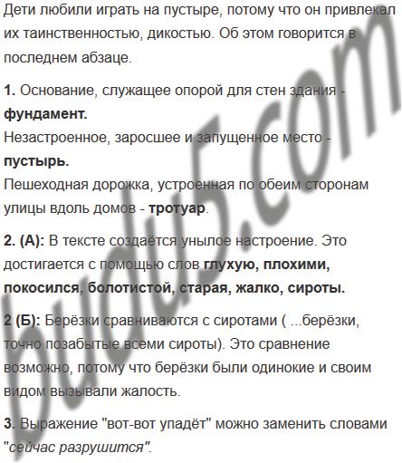 | 2. Какое настроение создаётся в тексте? С помощью каких слов это достигается? | 2. Найдите, с чем сравниваются в тексте берёзки. Подумайте, почему возможно это сравнение. |