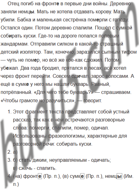 1. Попробуйте определить, по каким признакам текста можно догадаться, что фрагмент представляет собой устный рассказ. Подготовьте небольшое устное сообщение.