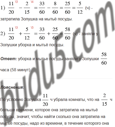 Золушка ч убрала комнаты, что на ч больше времени, которое она затратила на мытьё посуды. Сколько времени заняли у Золушки уборка и мытьё посуды?