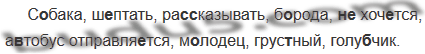 С..бака, ш..птать, ра(с, сс)казывать, б..рода, (не)хоч..т(?)ся, а..тобус отправля..т(?)ся, м..лодец, грус(?)ный, голу..чик.