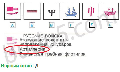 7. Используя историческую карту в учебнике (с. 28), отметьте условный знак, обозначающий русскую артиллерию.