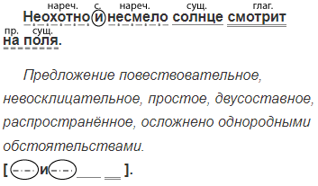 1. Цветы и травы покрывают зелёный холм. (А. Блок) 2. Тонкий туман разливается молоком в воздухе и застилает отделённые леса. (И. Тургенев) 3. Спи, дитя моё (обращение), усни! Сладкий сон к себе мани: в няньки я тебе взяла ветер, солнце и орла. (А. Майков) 4. Над крутыми берегами, над широким валом, над полями и лугами радуга вставала. (А. Прокофьев) 5. Неохотно и несмело солнце смотрит на поля. (Ф. Тютчев) 6. Ещё в полях белеет снег, а воды уж весной шумят. (Ф. Тютчев)