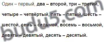 Напишите первые десять чисел натурального ряда в форме количественных и порядковых числительных: один – первый, ... .