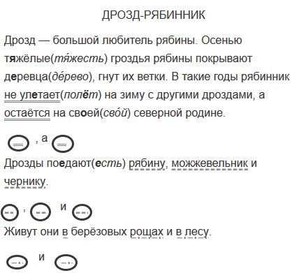 Дрозд — большой любитель рябины. Осенью т..жёлые гроздья рябины покрывают д..ревца гнут их ветки. В такие годы рябинник не ул..тает на зиму с другими дроздами ... остаётся на св..ей северной родине.