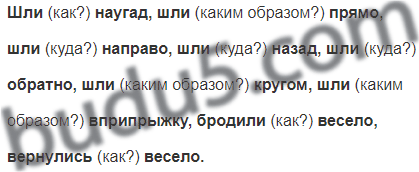 2. Выпишите выделенные наречия вместе с глаголами, которые они поясняют. Поставьте вопросы: шли (как?) наугад.